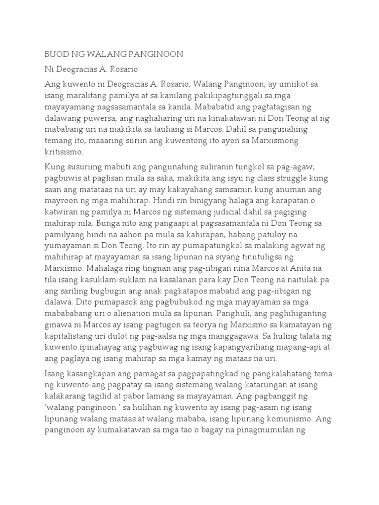 Buod Ng Maikling Kwento Na Walang Panginoon