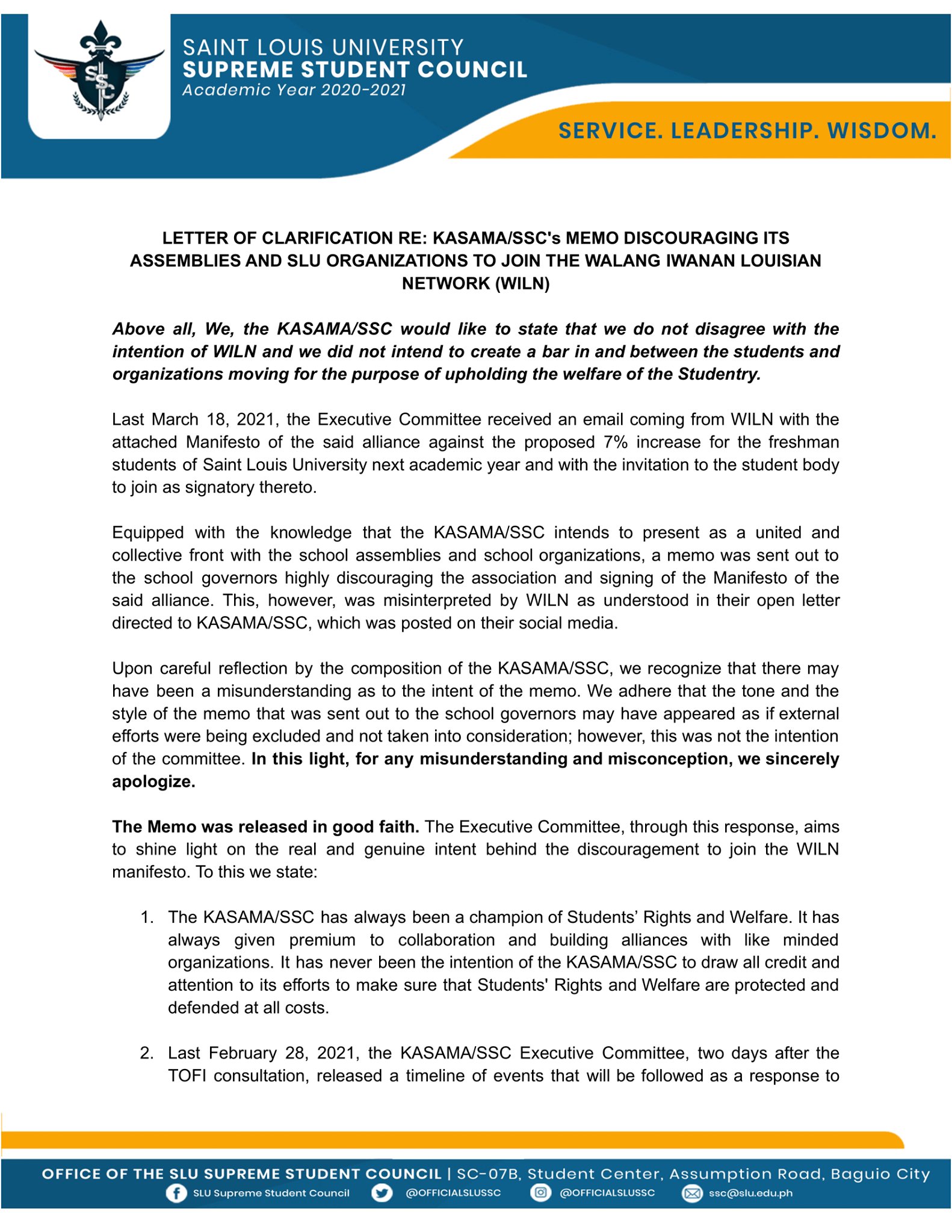 Slu Supreme Student Council On Twitter Letter Of Clarification Re Kasama Ssc S Memo Discouraging Its Assemblies And Slu Organizations To Join The Walang Iwanan Louisian Network Wiln A Copy Of The Letter With
